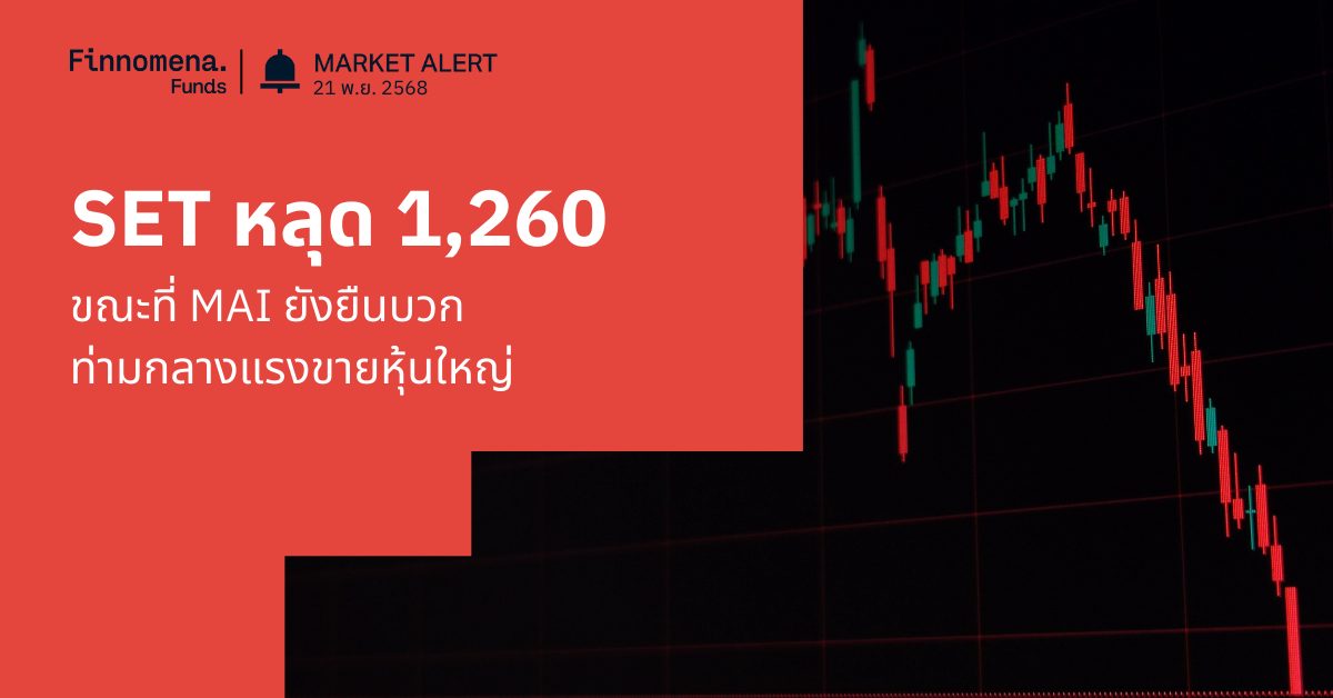 Finnomena Funds Market Alert: SET ร่วงแรง -2.14% หลุด 1,260 จุด ขณะที่ MAI ยังยืนบวกได้ท่ามกลางแรงขายหุ้นใหญ่–เทค นำโดย Delta -6%